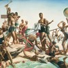 Presented like a neo-Classical frieze across the picture plane, Meere expresses the new ideal of sun-blessed freedom, unsullied by the political pollutions of Europe. Peopled by noble Anzacs, healthy, tall and upright, perfect in physique, mind and manners, Australia is the Antipodean ideal, the land of the free.