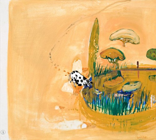inscribed lower left: on the road from Bathurst to Goulbounre [sic] stop the car looking down on paddock Sept. 2nd / make twenty minute sketch instead of taking / polaroid intend to make 4 in one day fresh quick inscribed and signed verso: ‘The Cow’ / Brett Whiteley