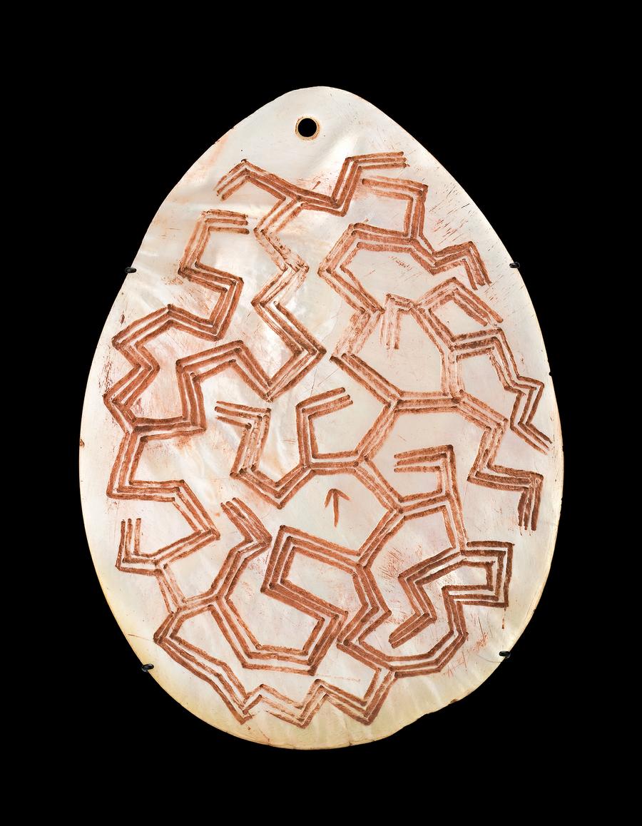 Riji and Jakoli, with incised traditional designs infilled with natural pigments