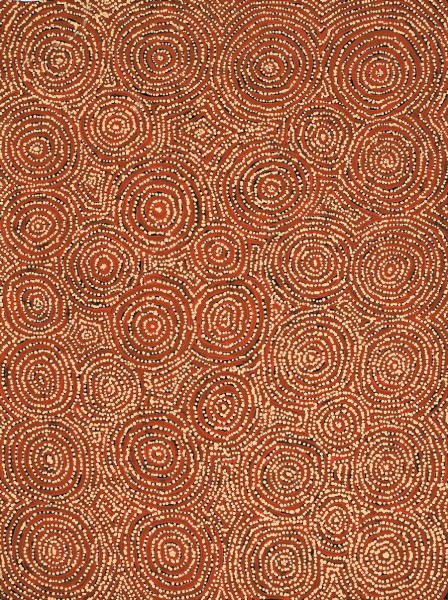 This painting is accompanied by a certificate of authenticity from Papunya Tula Artists Pty Ltd that reads in part, 'This painting depicts designs associated with the claypan and soakage water site of Pinkarrtu, situated amongst sandhills, west of Kaakuratintja (Lake MacDonald). In mythological times a large group of Tingari Men travelled from this site to Kaakuratintja. They were accompanied by a group of women who travelled separate from the men.'