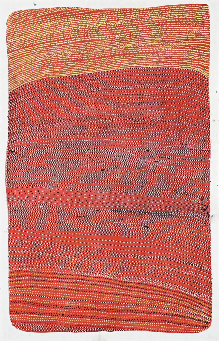 This painting is accompanied by a certificate of authenticity from Karen Brown Gallery, Darwin, which reads, 'Pincher's paintings are designs taken from cultural objects.'