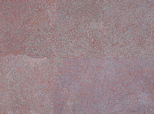 Joseph Jurra Tjapaltjarri first painted for Papunya Tula Artists in 1987, a year after he began to paint. He was born in 1952 in the desert close to what is now the community of Kiwirrkura in Western Australia. Joseph and his family were brought to the settlement of Papunya by one of the Northern Territory Welfare patrols in 1964. This large and important painting was executed in 2004 and follows a stylistic theme relating back to his earlier work included in the exhibition Papunya Tula; Genesis and Genius which was held in 2000 at the Art Gallery of New South Wales. His works are held in numerous public collections including the National Gallery of Australia.