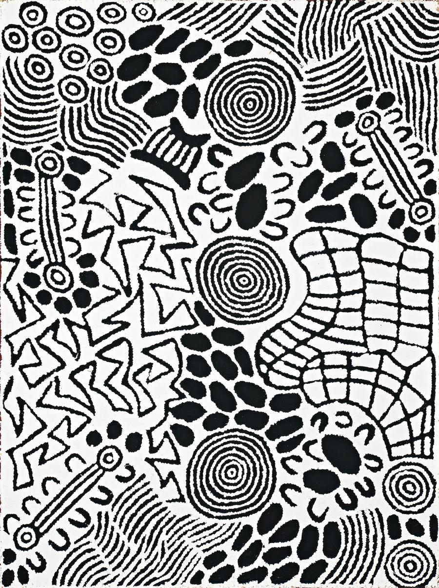 inscribed verso: artist's name, size and Papunya Tula Artists Pty Ltd catalogue number EM0105006