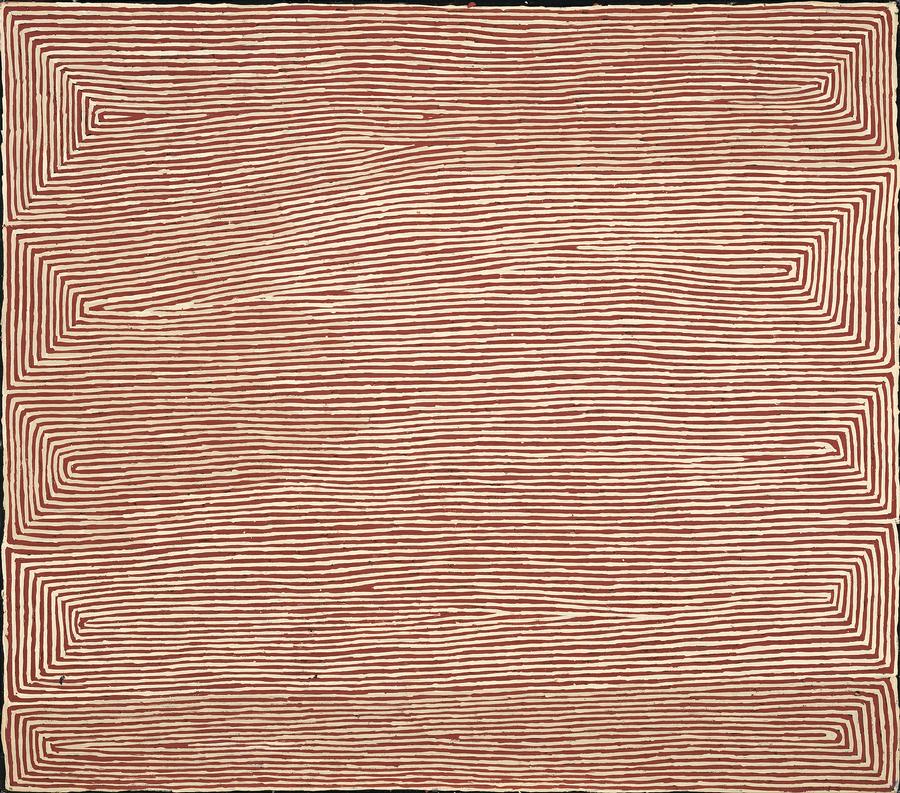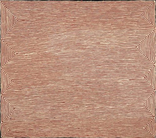 This painting is accompanied by a certificate from Papunya Tula Artists Pty Ltd, Alice Springs which reads in part: ‘This painting depicts designs associated with the soakage water site of Unkunya, west of the Pollock Hills in Western Australia. The two Snake Dreaming travelled through this site. This mythology forms part of the Tingari Cycle.’