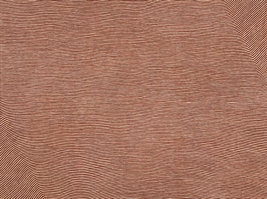 This painting is accompanied by a certificate from Papunya Tula Artists (catalogue number GT0102014). The certificate states that 'An old Tingari Man of the Tjapaljarri kinship subsection was camped at the claypan and soakage water site Mamultjulkunya' Generally, the Tingari are a group of mythical characters of the Dreaming who travelled over vast stretches of the country, performing rituals and creating and shaping particular sites. The Tingari Men were usually followed by the Tingari Women and accompanied by novices and their travels and adventures are enshrined in a number of song cycles. These mythologies form part of the teachings of the post initiatory youths today as well as providing explanations for contemporary customs.'