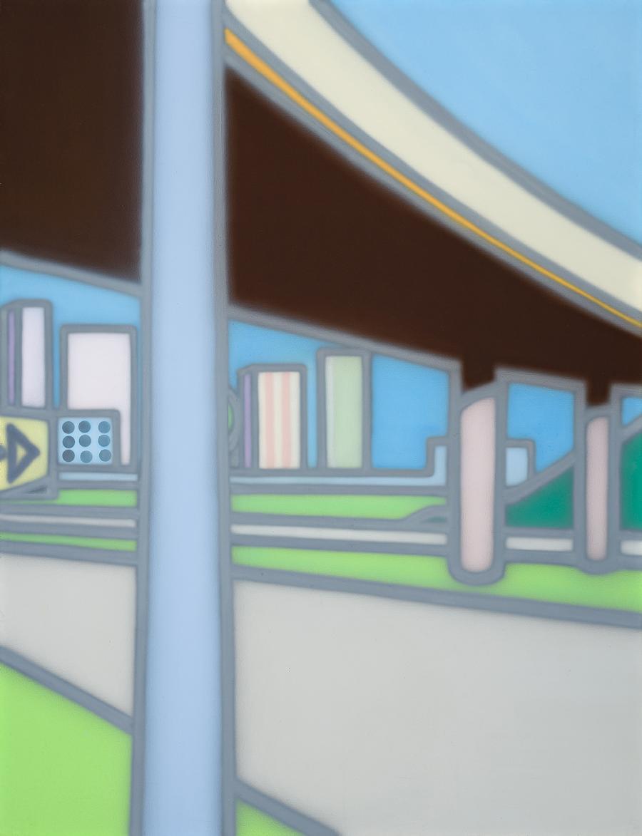 Most likely inspired by a trip in 1987 to Canberra where Arkley photographed the many freeways and overpasses, the artist's interest in the subject can also be traced to the significant quantity of source material that he collected on them. Indeed, towards the end of his life, the artist was preparing material for another series of Freeway works, this time based on a group of photographs he has taken of the Los Angeles freeways.