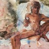 signed and inscribed lower right: God Figure (The cave at Bratan) Donald Friend Bali