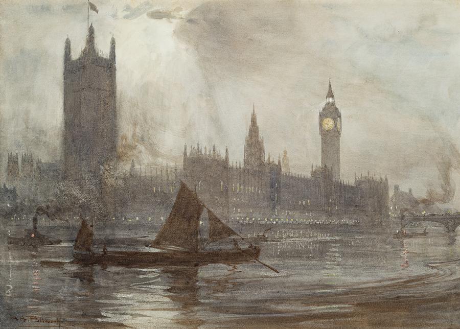 VIEW OF HOUSES OF PARLIAMENT AND PALACE OF WESTMINSTER, 1909