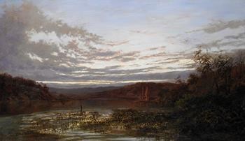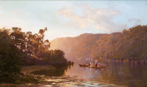 Despite the high acclaim and numerous accolades with which Piguenit’s evocative landscapes were received during the latter nineteenth century, his subsequent reputation has been overshadowed by those of contemporaries such as Louis Buvelot and the young guns of the Australian Impressionists whose landscapes were pastoral rather than sublime. But Piguenit warrants ongoing recognition for his fascination with atmospheric effects (particularly light upon water) and his determination to reveal the grandeur of remote landscapes of Tasmania and New South Wales to an urban audience. Indeed, many of the regions he painted are tourist highlights today, such as Lake St Clair and Lake Pedder. Fortuitously much of the upper Lane Cove River has been protected from development and is now enjoyed by visitors to the Lane Cove National Park.