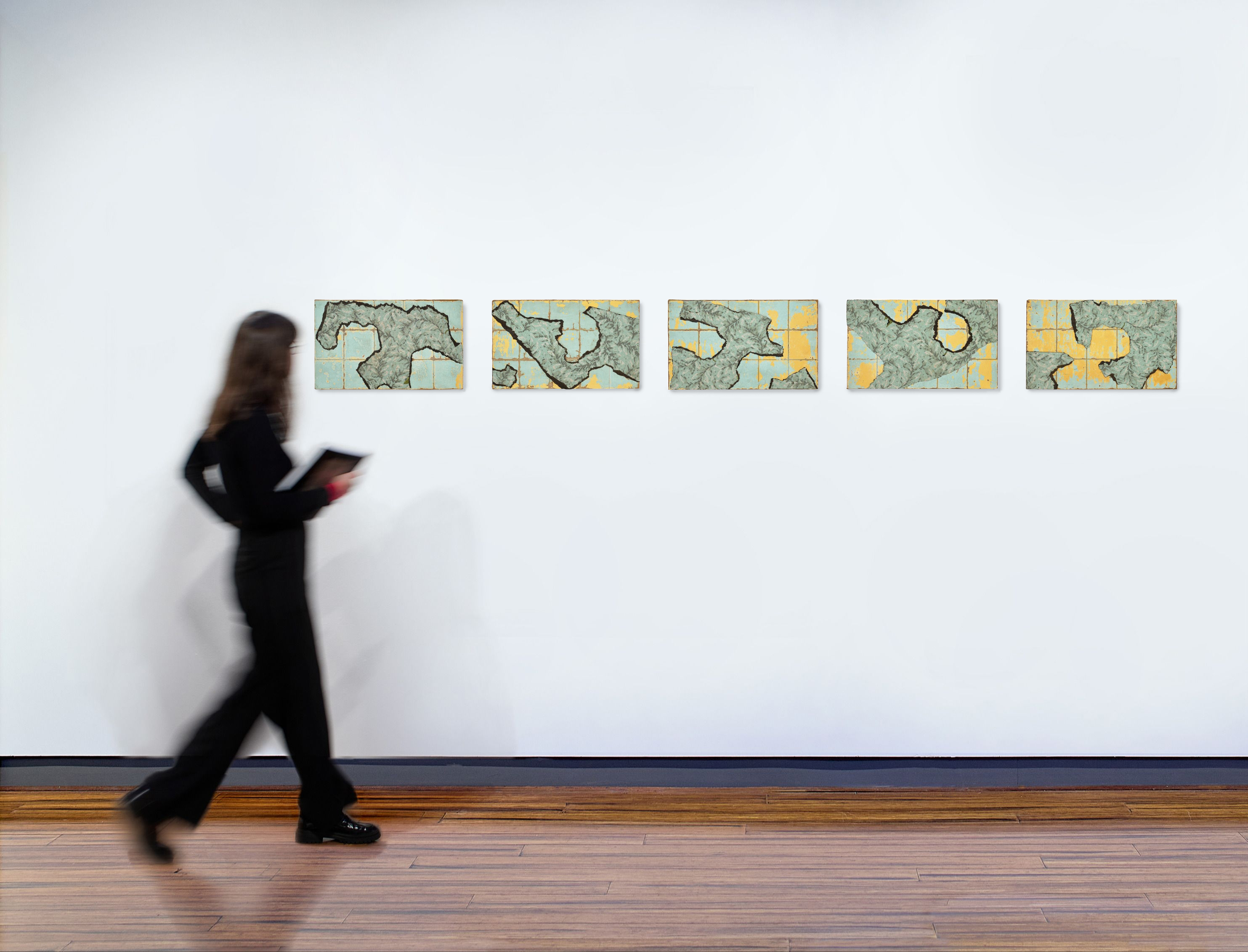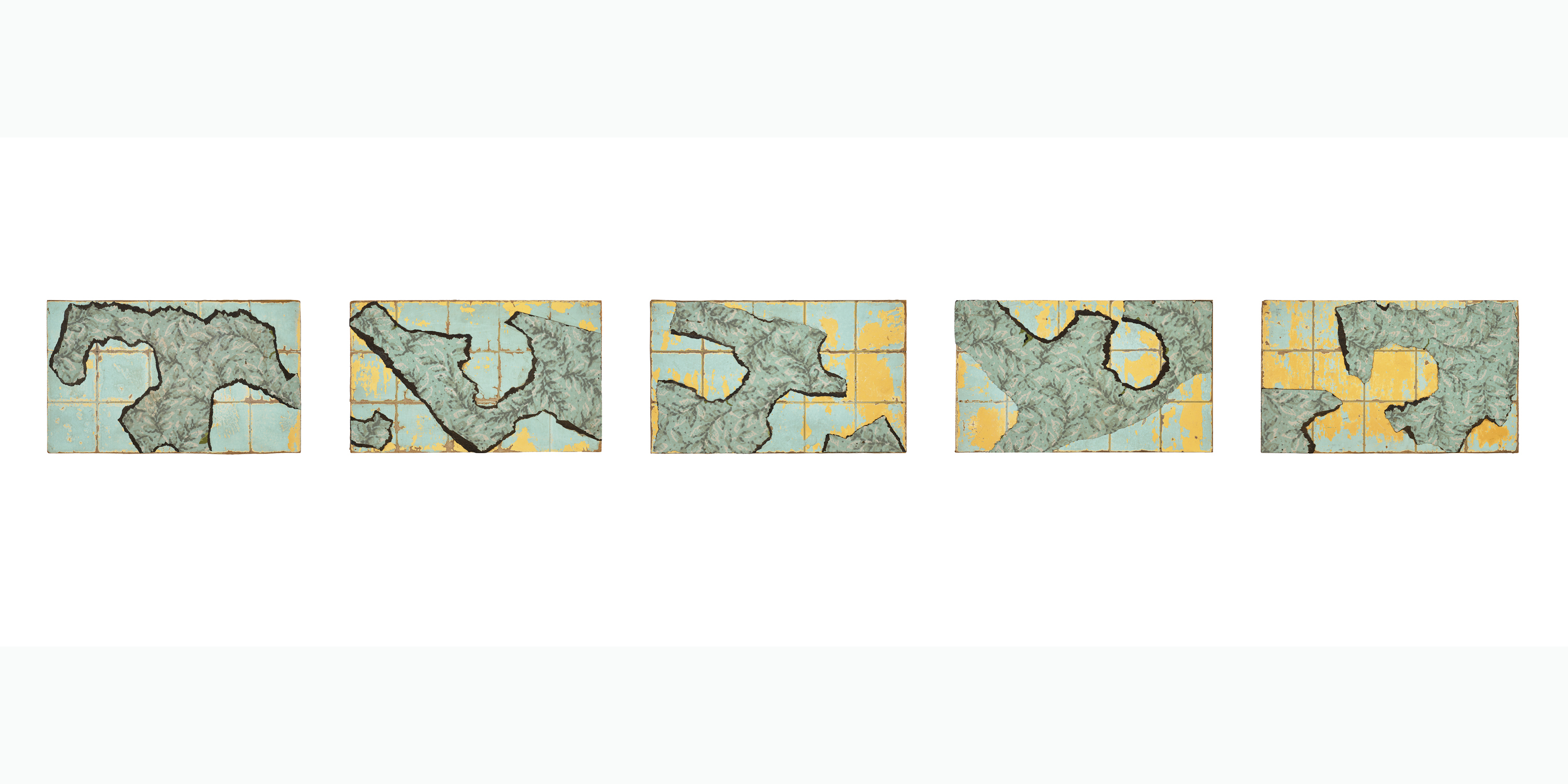 It is through this astute combination of name and material form that the pieces of torn linoleum in Archipelago transform into a group of islands floating in the sea, their jagged coastlines viewed from above as if in an old-school atlas. Yet despite the sense of mystery and nostalgia that recollection of this activity invites, in the twenty-first century, Archipelago’s evocation of a cluster of potentially vulnerable islands on a map cannot help but transcend the artist’s initial intentions, becoming a poetic meditation on power, borders and boundaries, and the impacts of climate change. Given Gascoigne’s description of herself as ‘a sideways thinker’,6 one can fairly assume that she would have enjoyed the new and vital associations that the work continues to bring. As she has said: ‘I like going foraging with an open mind and happening upon things. It is a non-binding sort of art. I can fly off at tangents and be diverted by the unexpected. I read somewhere of ‘lyrical derangements.’ It fits my approach.’7