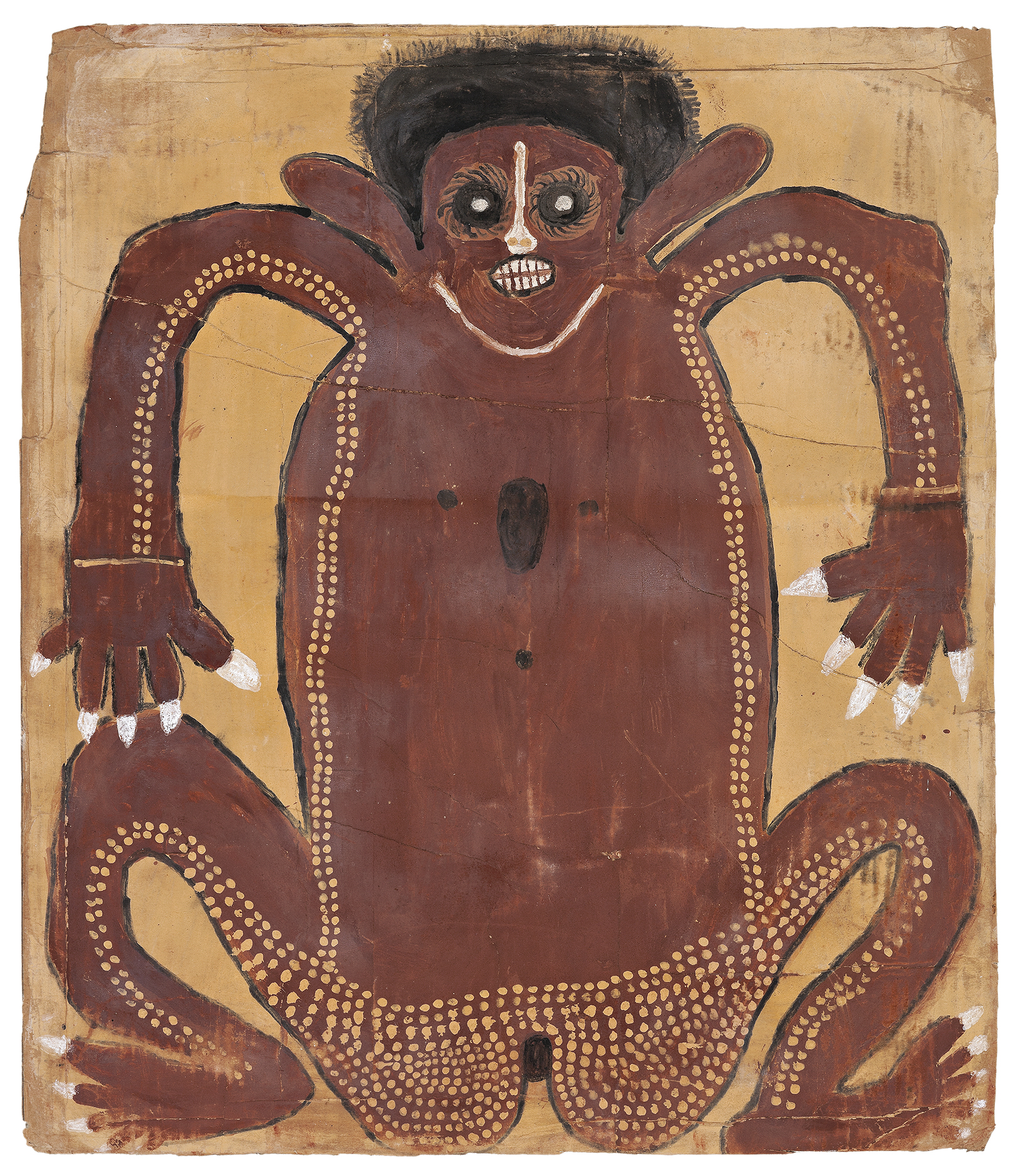 Described in his book, Aboriginal Artefacts, as one of a number of paintings on cardboard, stored in Charlie's hut at Gibb River, McCourt notes that it is a painting of ‘A 'devil-devil' in brown and black, with claws on its fingers.’ 3