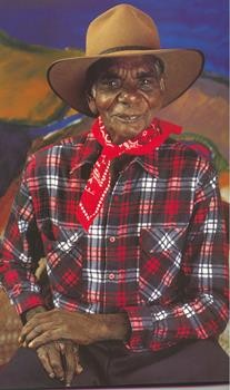 Whilst still in his adolescence, Munduwalawala had a chance encounter with the famed watercolourist Albert Namatjira, whose style was to have an ongoing impact upon his art practice. The meeting with Namatjira was to resonate considerably, forging ‘Riley's idea that the colours of the land as seen in his imagination could be captured in art with munangu paints.’1 Soon after that initial meeting, Riley tried his hand at painting but the results were unsatisfactory to the artist.