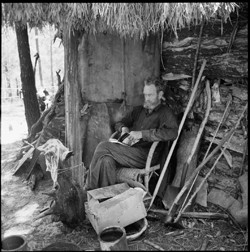 The most dramatic chapter of Fairweather’s life was the extraordinary attempt he made in early 1952 to sail from Darwin to Timor on a raft which, according to the Times correspondent, ‘he built … with three old aircraft fuel tanks which he found in a dump, and the minute sail was fashioned from three panels of old parachute canopy. The raft was stocked with some tinned food, eight gallons of water, a blanket, and a change of clothing, and he set out on a trade wind’.3 Fairweather had researched the journey and studied the tides and, inspired in part by Thor Heyerdahl’s legendary Kon-Tiki expedition, calculated that he would reach his destination within ten days.4 Sixteen days later however, ‘after hallucinating, and being given up for dead, wearing only one shoe, he collapsed on the sand in the moonlight … at Roti, the last dot on the map west of Indonesian Timor’5 before the vast Indian Ocean and certain drowning. Interrogated in Indonesia, he made it to Timor briefly before being sent to Bali, deported to Singapore and then (as a British citizen) shipped back to London where his passport was confiscated until he repaid the cost of his fare. Fairweather said that Timor ‘(was) the next best thing to Bali where I had done the best painting of my life’6 but his motivation to leave Australia was also driven by a protracted period of unhappiness largely fuelled by his own anxiety and paranoia.