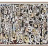 Pierre Ryckmans has explained Fairweather’s apparent disdain for material comforts and regular human interaction as the consequence of a need that was both innate and profound: ‘he needed to paint like one needs to breathe; had he dropped his brush, he would have suffocated’.8 Arguing that his passion was based in the activity of painting rather than in the finished works themselves, he also provides a compelling explanation for why Fairweather was so notoriously haphazard about the materials and techniques he used, and the careless indifference with which he stored and transported them – put simply, the process was more important than the result. Black and white photographs of the studio hut show tables covered cheek by jowl with tins of paint, many open with brushes in them, ready and waiting to be used. Surfaces are covered with random spatters and dribbles of paint, colours layered one on top of the other creating a visual trace of the pictures produced there. Beyond his basic requirements Fairweather was also largely disinterested in the commercial rewards of making art and when, in the late 1950s, Macquarie Galleries suggested an increase to the cheques they regularly sent, he replied, ‘No I am not anxious to draw money in larger amounts – paintings materialise so uncertainly and slowly that the chief consideration is to endure – long enough to finish something’.9