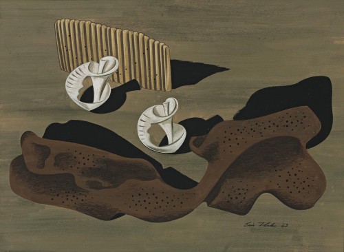 signed, dated and inscribed with title verso: BASS AND FLINDERS / Eric Thake 1943 / Painted from objects / found on Flinders Beach
