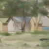 With her hand-made painting trolley in tow, Beckett would wander the same areas repetitively, always approaching a scene with a different ambition as to the mood she wished to capture. Indeed, when asked why she never felt the desire to travel more widely, she responded ‘I have only just got the hang of painting Beaumaris after all these years, why should I go somewhere else strange to paint?’3 From the earliest days of colony, this locale attracted pleasure seekers with the first public swimming baths dating from the 1840s. By the turn of the century, clusters of bathing boxes were built within the ti-tree scrub by private individuals, or to service the patrons of nearby guesthouses. In Bathing Boxes, Beaumaris, Clarice Beckett turns her gaze to one such group located in the cove of Watkins Bay, at the end of the street where the artist lived. Beckett’s distinctive style is immediately recognisable and, when seen collectively, her paintings provide an unsurpassed record of the changing landscape of the region. By the time Bathing Boxes, Beaumaris was likely painted, bathing huts could be found on all beaches in the area, sometimes two or three deep. The aspect of this work is nearly identical to that of Yachts in the bay, c.1933, a smaller painting in the collection of the National Gallery of Australia; and the Beckett family’s own hut was just outside the frame to the left. The artist’s compositional skill and mastery of colour allows the jumble of huts to be elegantly constrained by the greens of the grass and trees; and the single patch of blue water to the right emphatically anchors the whole design.