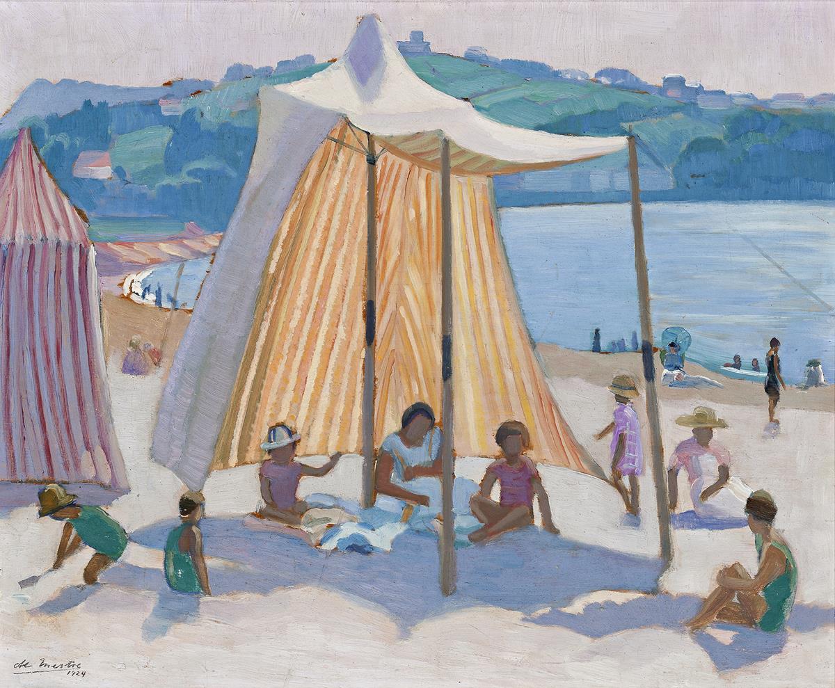 De Maistre’s introduction to St Jean de Luz, the newest and most fashionable of France’s beach resorts – birthplace of Ravel, site of Fauve paintings by Marquet – had probably been the previous winter, as a guest of his cousin Camilla and her husband Lieutenant-General Sir Alfred Keogh, who had retired there in 1922. Attracted, he found a studio to rent and returned with a group of students in October or November 1924. The Beach was among the first works produced during the four months he spent there (until 1 April 1925).