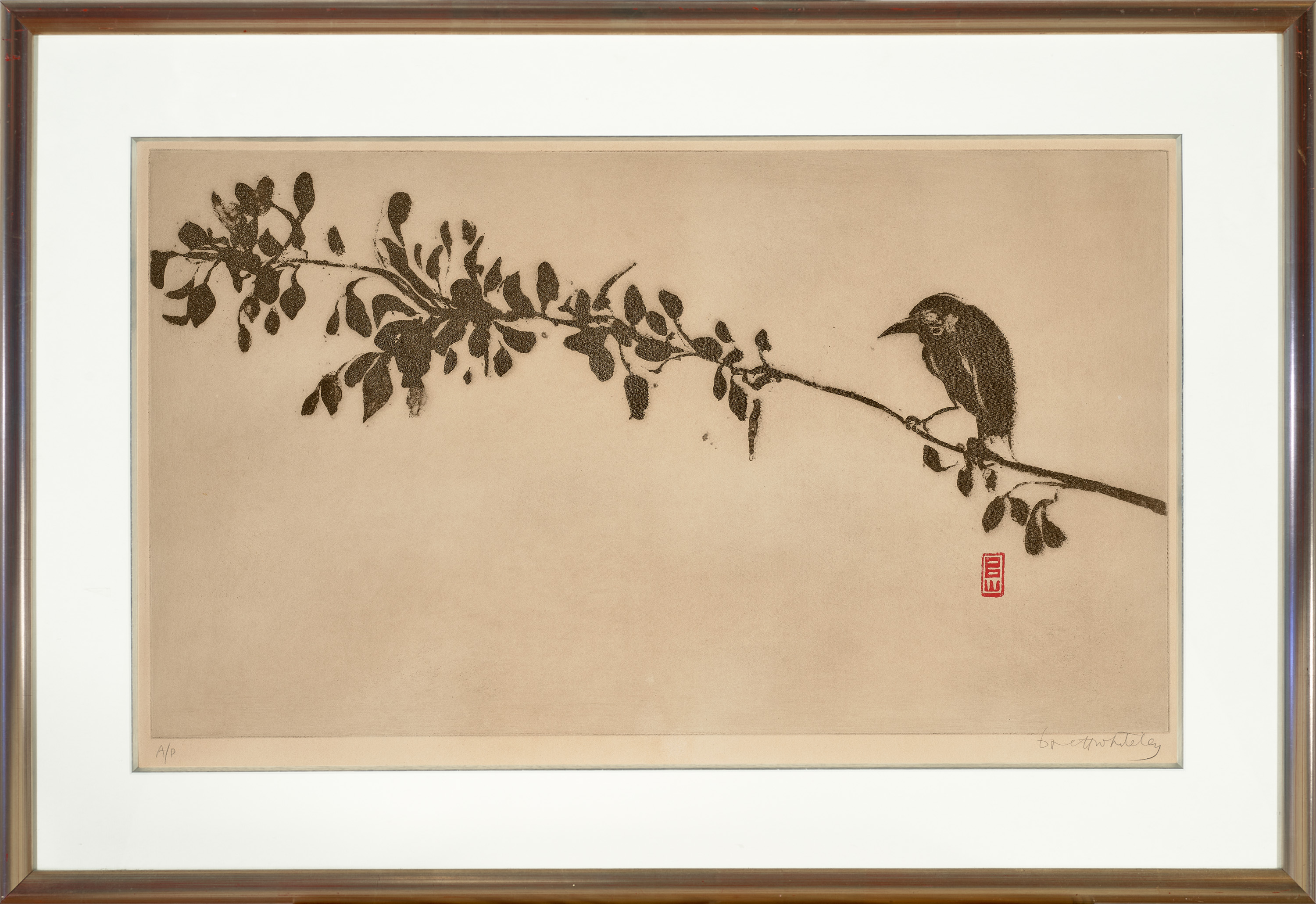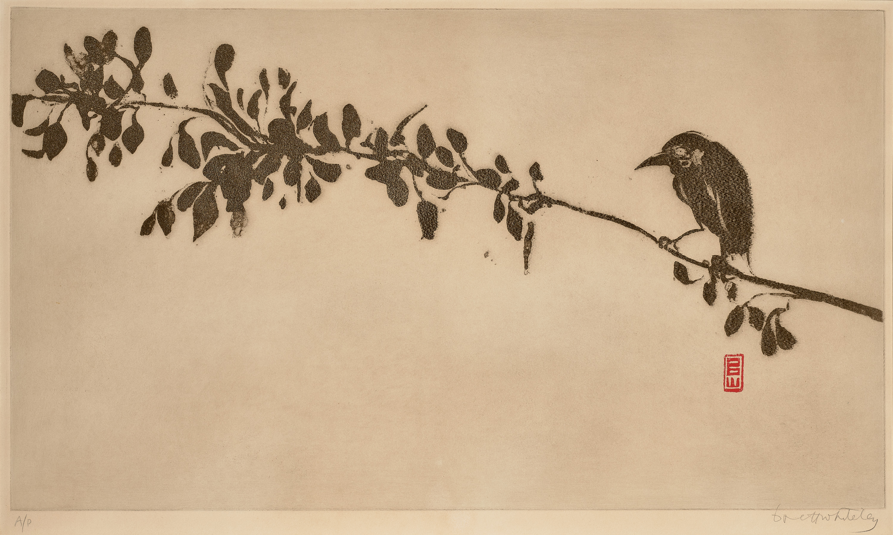 Brett Whiteley, Recent Painting and Drawings, Fischer Fine Art, London, September 1977, cat. 76 (another example, as 'Bird on Branch')