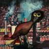 bears inscription on label attached verso: BIRD OVER THE CITY / 1952