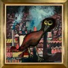Charles Blackman was essentially self-taught as an artist, but he was an omnivorous reader and observer. He honed his distinctive drawing skills as a copy boy on the Sun newspaper in Sydney between 1942 and 1947, but it was the inner worlds he discovered through reading that furnished him with many of his early imagery. These included authors and poets such as Rimbaud, Verlaine, Kafka, and Baudelaire. This was a rich vein of inspiration, but the ‘texture’ of these literary sources was magnified by his practice of reading aloud to his wife Barbara as her sight slowly declined during the early years of their marriage. After a peripatetic period travelling between Melbourne, Sydney and Brisbane, the young couple settled in a tiny shed behind a mansion in East Melbourne, and Blackman would often navigate the semi-industrial back streets of nearby Richmond after work at a variety of jobs. Such a landscape may be seen in the background of Bird over the city, 1952, dominated by an all-knowing, powerful owl which stares, unblinking, back at the viewer.
