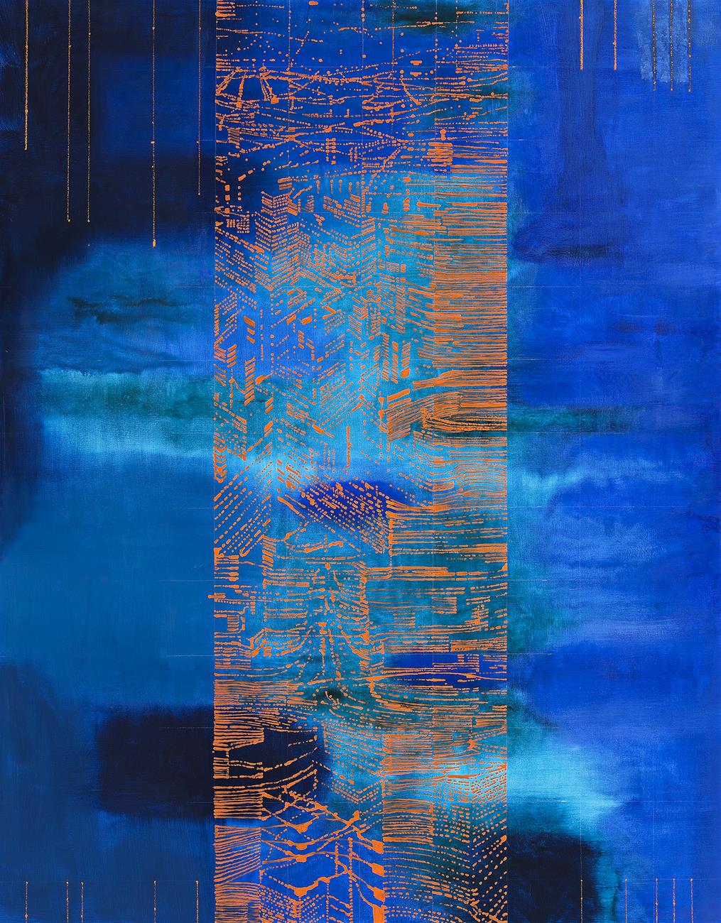 signed, dated and inscribed with title verso: JON CATTAPAN 2005 / “Blue Channel No. 1” / … / Cattapan 2005