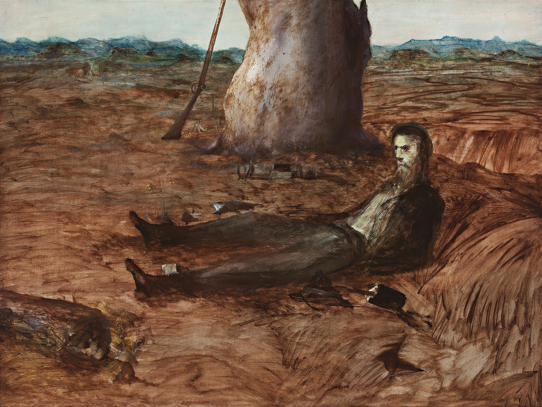 The experience of Sidney Nolan’s extended visit to Central and North-west Australia in 1949 paved the way for an extraordinarily productive period in which he painted some of his most distinctively Australian pictures. During the trip, Nolan read about the Burke and Wills expedition, later writing ‘I doubt that I will ever forget my emotions when first flying over Central Australia and realising how much we painters and poets owe to our predecessors the explorers, with their frail bodies and superb willpower.’1