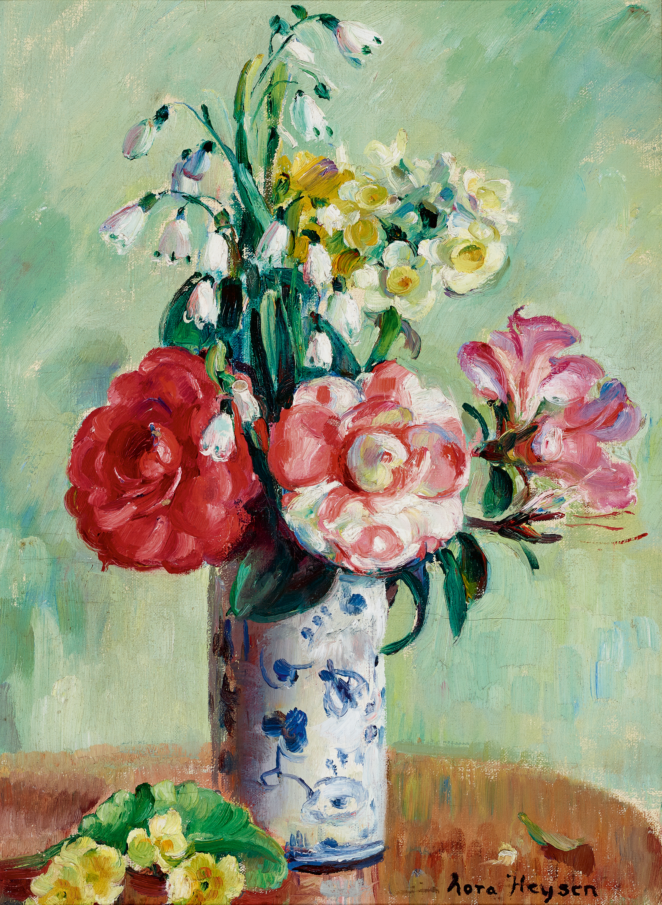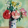 CAMELLIAS AND MIXED FLOWERS IN A DELFT VASE