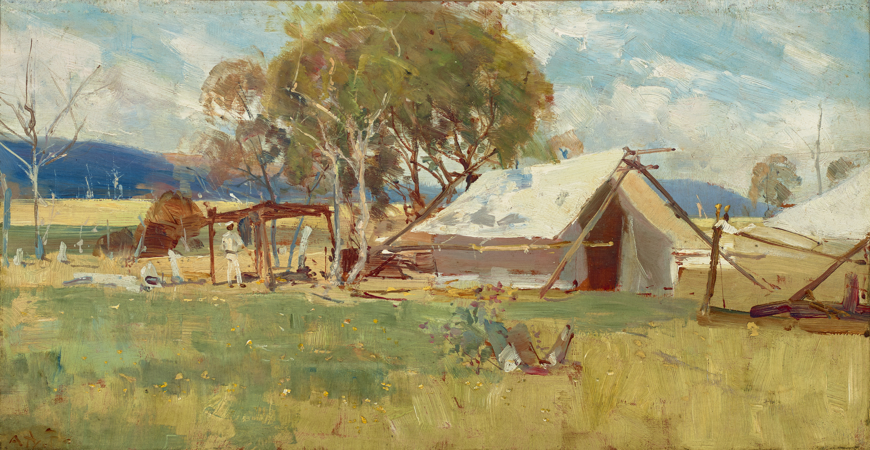 bears inscription verso: THE CAMP / BY A.H FULLWOOD
