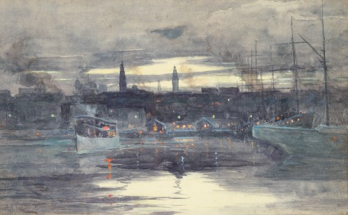 A Very Private Collection, S.H. Ervin Gallery, National Trust Centre, Sydney, 15 June – 15 July 1990, cat. 15 (as ‘Evening Scene at Circular Quay’)
