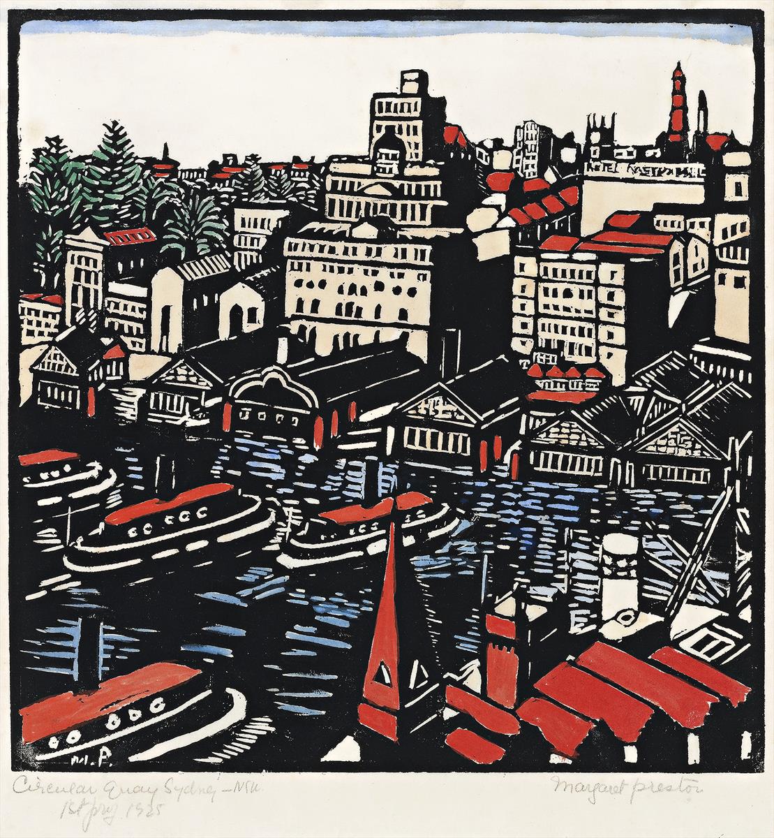 signed, dated, numbered and inscribed with title under image: Circular Quay Sydney - N S W Margaret Preston / 1st Proof 1925