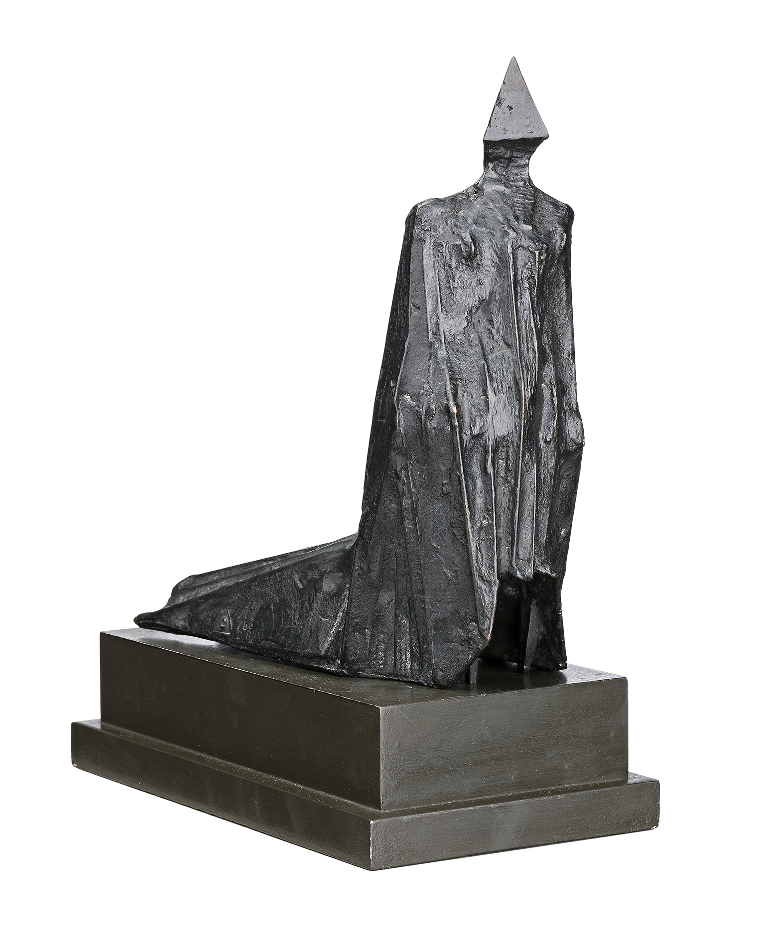 …By the 1970s the female head has become either a pyramidal or diamond shape, the male more aggressively rectangular. Yet always Chadwick looks for geometry and tension… The word ‘attitude’ often recurs in his conversation: ‘I would call it attitude, you know, the way that you can make something almost talk by the way the neck is bent, or the attitude of the head…’ One can see a shift in his work away from the dancing figures of the 1950s, towards the brooding stillness of his standing and seated figures from the 1960s onwards…Just as some of his figures become winged, a theme he takes up again in the early 1970s, so in 1976 he evolves striding figures clad in cloaks…1.
