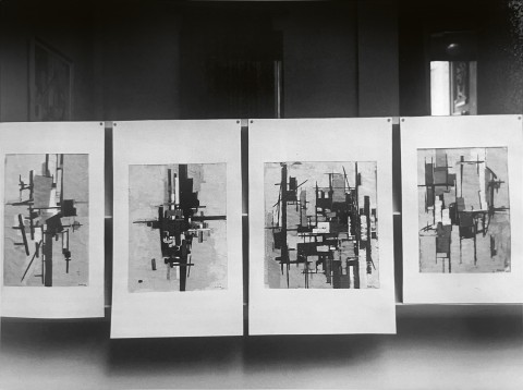 Installation of Four Constructions in gouache and ink, 1956,