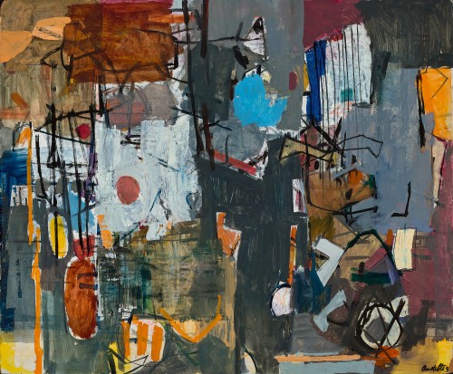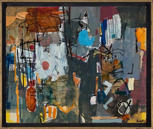 signed, dated and inscribed with title verso: Audette / Composition of line and colour / 57 - 58