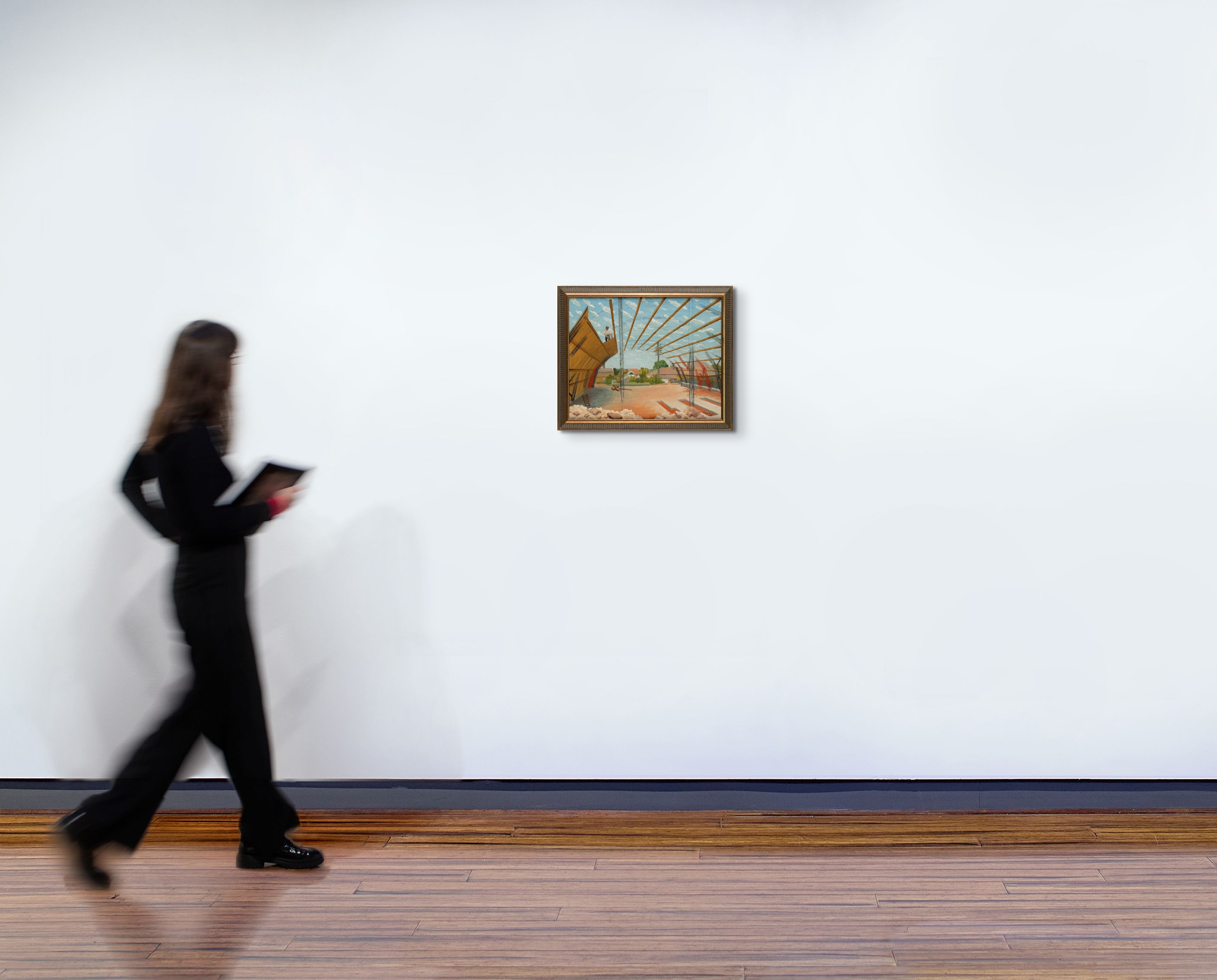 inscribed with title verso: Construction of a Hangar