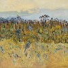 Around this time Williams took pains to qualify his pragmatic and impersonal distance from the Australian landscape, explaining “I don’t like the bush the way Clif [Clifton Pugh] does […] I couldn’t say I loved the bush… I simply want to paint pictures from it”2. The common flowering acacia tree nevertheless held the artist in a certain enduring thrall, resulting in masterpieces spanning a period of ten years (1969 – 1979), including Cootamundra Wattles. Painted en plein air with a high-key palette dominated by contrasting deep violets and rich yellows, this painting is an elegy to a fragile ecosystem, in turn neglected and destroyed by human intervention. Boldly blooming in the face of adversity, the titular Cootamundra wattle trees dance through the landscape in an accented dotted frieze, embodying the potential for regeneration.
