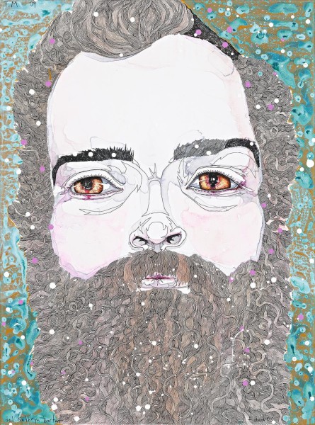 synthetic polymer paint, gouache, watercolour and pen and ink on canvas