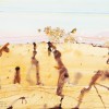 Over the subsequent two decades, Olsen would continue this devotion to the Australian outback with repeated visits to Lake Eyre and North Queensland providing the impetus for some of his most lyrical insights into the natural environment. With its liquid floating fields of golden colour and pulsating calligraphic line, Desert and Orange Chats, 1993 represents a particularly charming example of Olsen’s interpretations from this period. Depicting a party of bright Orange Chats (also known as ‘Saltbush Canaries’) commonly found in semi-arid areas within the interior, the work resonates with a vitalistic energy – betraying a sense of not only keen observation but joyful celebration derived from the artist’s spiritual immersion in the landscape as well. For Olsen indeed, the wild reaches of the Australian outback offered more than mere external phenomena to be accurately recorded. More fundamentally perhaps, the experience became the catalyst for a myriad of ideas and metaphorical connections that would permeate Olsen’s art for decades to come, reaffirming his Taoist belief in the total interconnectedness of all living forms and thus, heralding a new spirituality in his art. As Olsen himself poignantly muses,