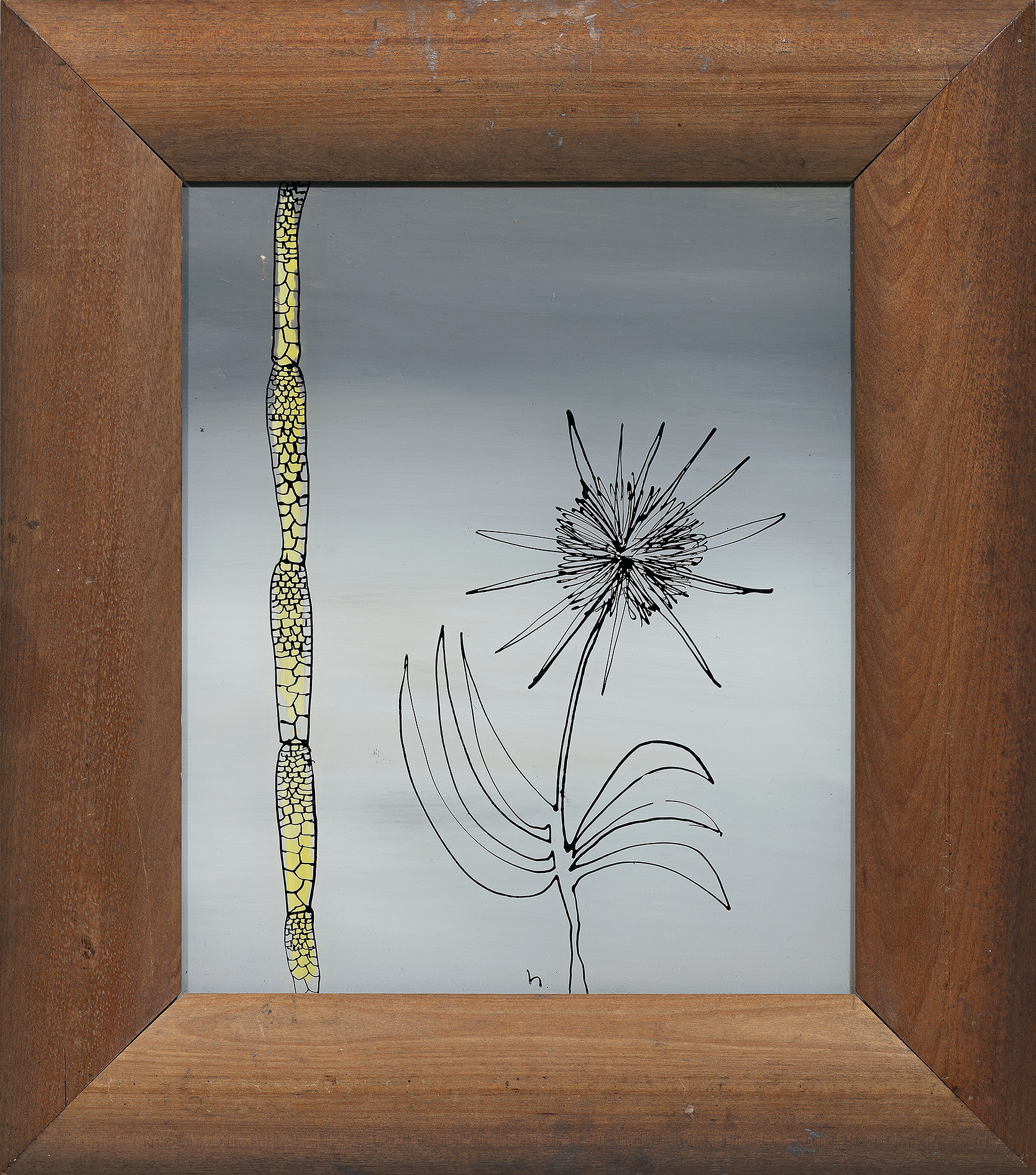 ink and enamel paint on glass
