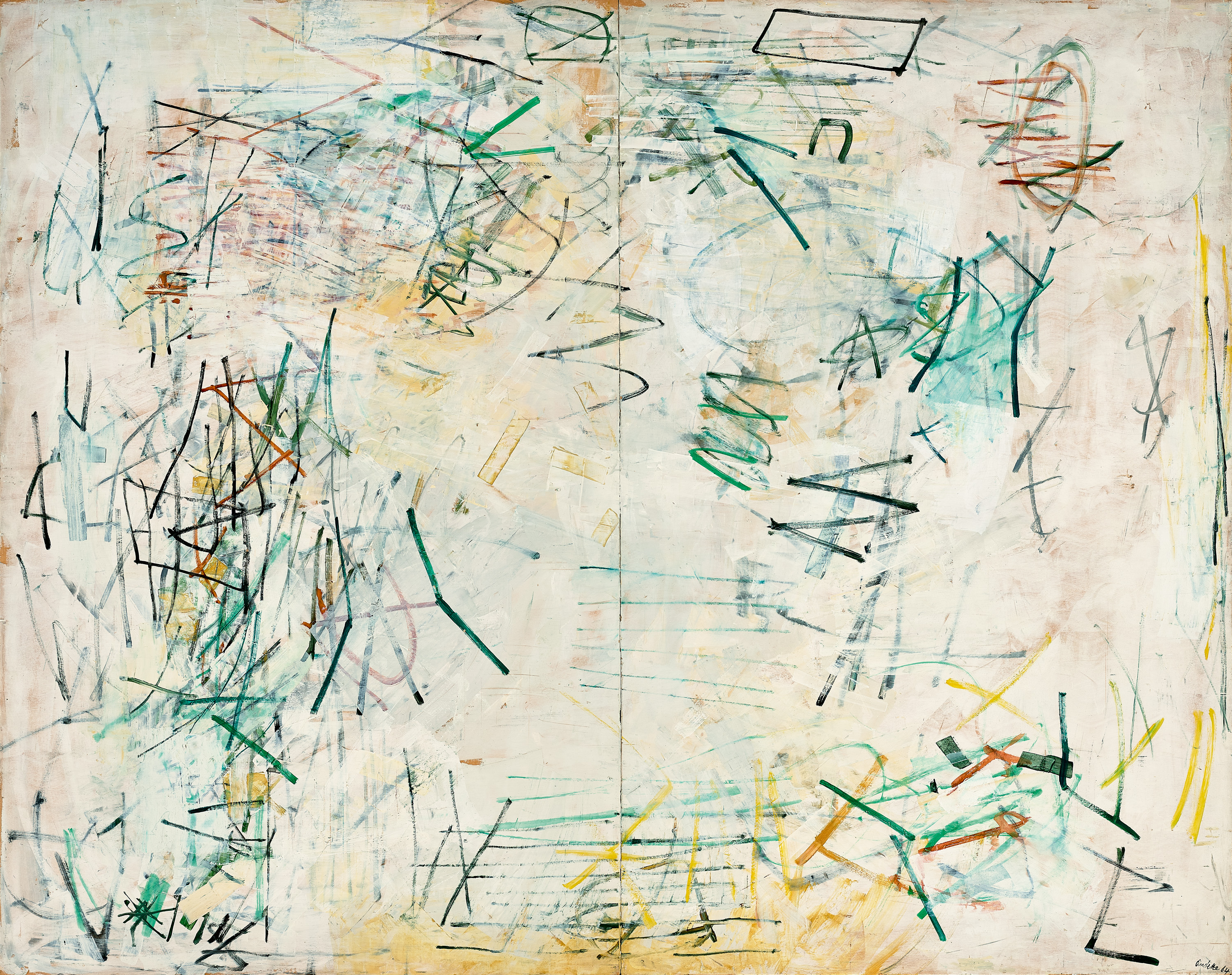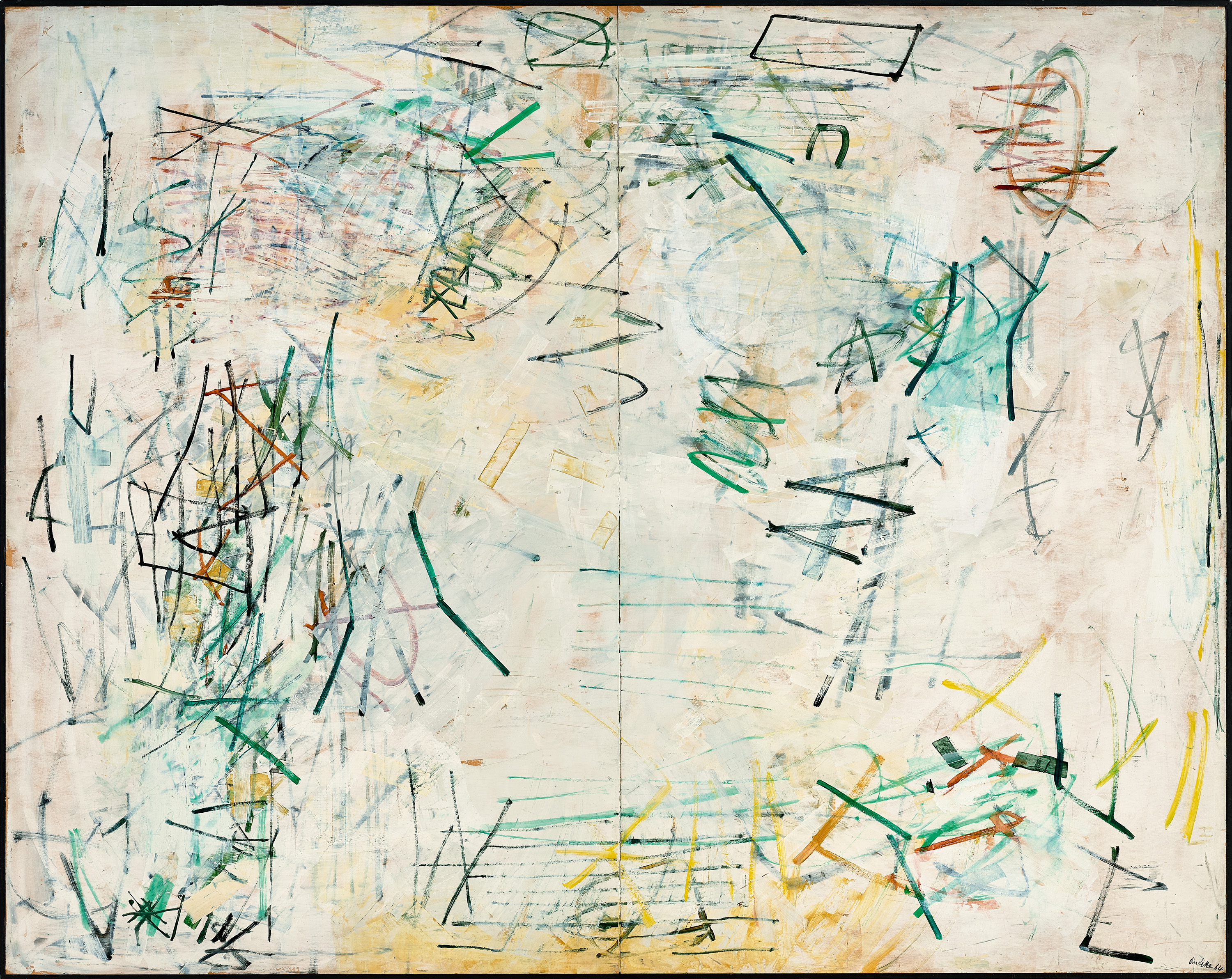 signed, dated and inscribed with title on right panel verso: Audette / 1964 / 1964 / "DIFFERENT DIRECTIONS" / Part 1