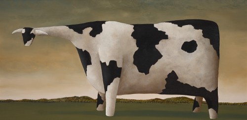 Fusing intelligent social commentary with playful humour, reality with non-reality, John Kelly is recognised internationally as one of the most original artists of his generation. Widely acclaimed for his iconic theme of ‘the cows’ exemplified here brilliantly by Dobell’s Cow – Painted, 1992, Kelly completed a Masters of Arts at RMIT University in 1995, following which he was awarded the prestigious Anne and Gordon Samstag International Visual Arts Scholarship to further his studies as an Affiliate student at the Slade School in London. He has since regularly exhibited in the United Kingdom with Piccadilly Galleries, Agnew’s, and Merville Galleries, and his surrealist cow sculptures have been included in a number of major international exhibitions including the Champs de la Sculpture II (1999) on the Champs Elysées, Paris; La Parade des Animaux (2002) in Monte Carlo; the Musée d’Art Moderne de Contemporaine, Nice (2007); The Hague (2007); Glastonbury (2006 and 2007); and Cork City (2011). Closer to home, he is known to local audiences through his beloved Cow up at Tree sculpture permanently situated on the Harbour Esplanade at the Docklands, Melbourne.