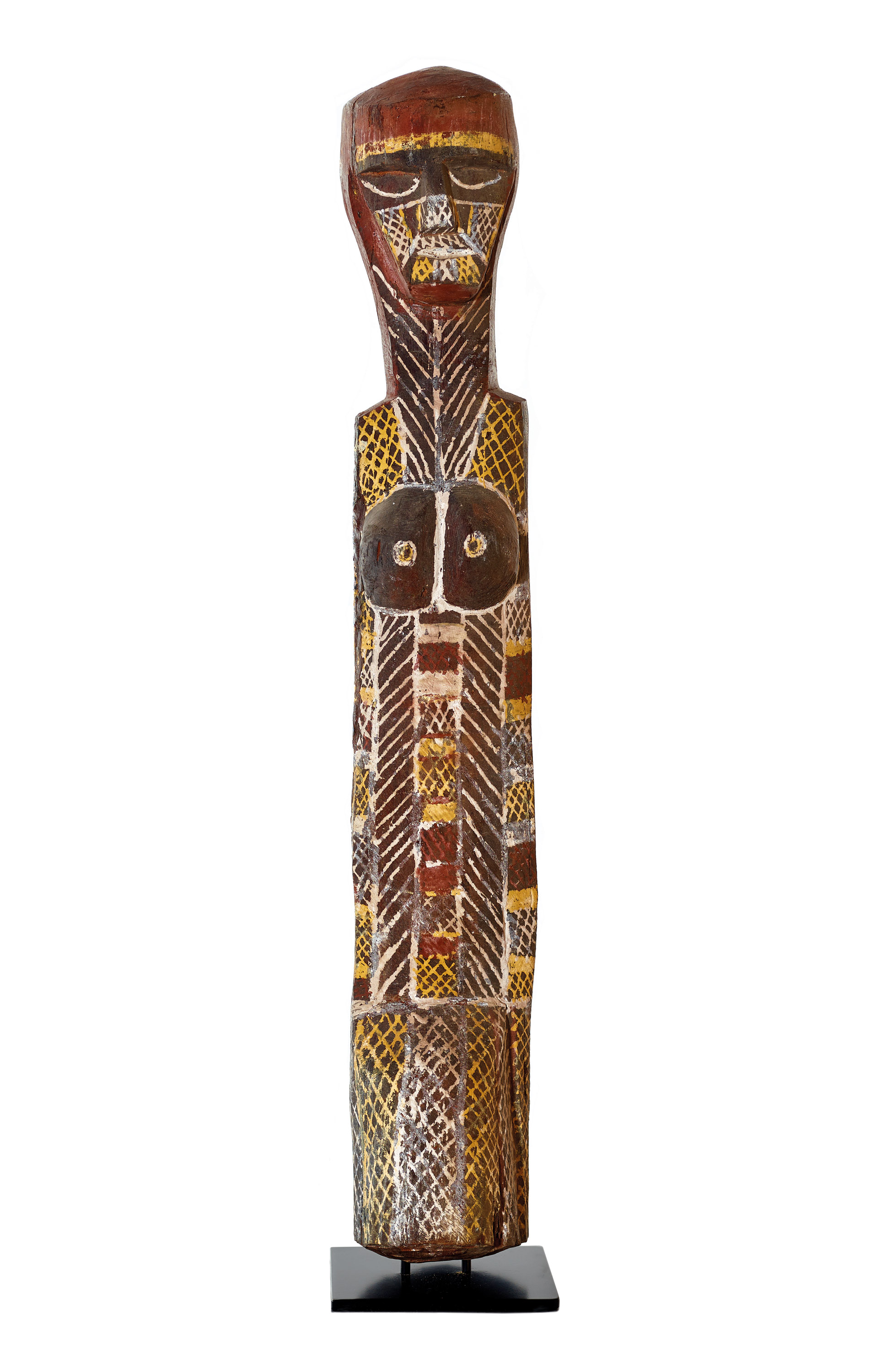 together with a copy of a certificate from Aboriginal Arts and Crafts Pty Ltd. which states: ‘It is thought that the Tiwi of Bathurst and Melville Islands were introduced to carving human figures by Malay Trepang fisherman from the Celebes, who made seasonal visits to northern Australian waters, fishing for Trepang, over a period of several centuries. The carved and elaborately decorated figures became an integral part of Tiwi ceremony and are used to represent tribal ancestors from the Dreamtime. The isolation of the Tiwi people from the mainland also contributed to the development of a unique art style which differed distinctly from that of mainland aboriginals.