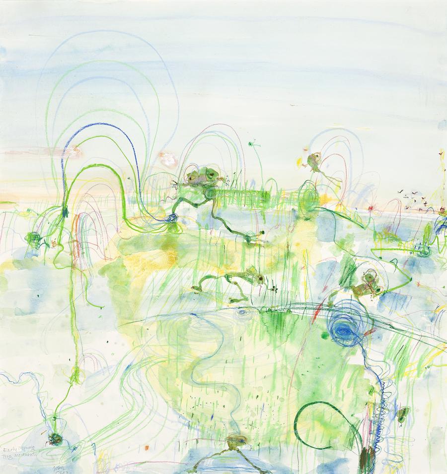 signed and inscribed lower left: 'Early Morning /Frog Movements' / John / Olsen