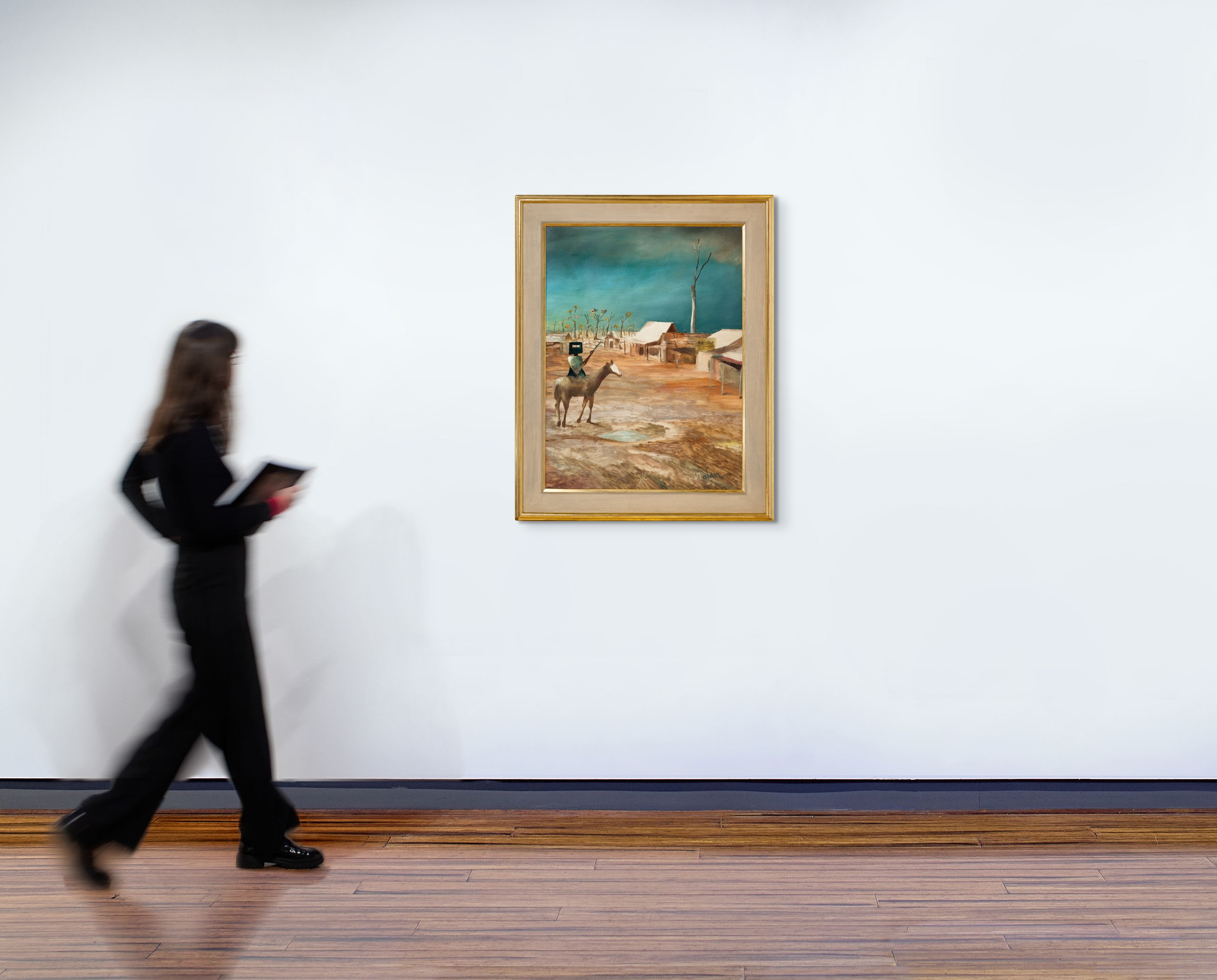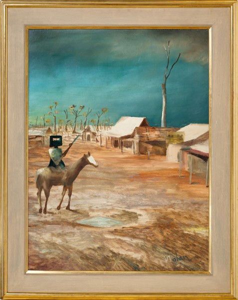 Institutional purchases from this period reflect the importance of the Kelly paintings from the mid 1950s. Additional to the painting purchased by MOMA New York, Kelly Spring, 1956 was acquired by The British Council. In 1959, the Contemporary Art Society gifted Death of a Poet, 1954 to the Walker Art Gallery, Liverpool. The Tate Gallery also acquired Glenrowan, 1956 - 57 from Nolan’s large solo exhibition at the Whitechapel Gallery, London. Turning to Australian art collections, The Art Gallery of New South Wales has a smaller Ned Kelly painting completed just six days prior to Early Morning Township, and the Art Gallery of Western Australia is home to The Disguise, 1955 also from the Kelly Series. The National Gallery of Australia in Canberra has Kelly Crossing Bridge, 1955, while the National Gallery of Victoria is home to Kelly and Horse, 1955. The unquestionable importance of these works in 20th century Australian art cannot be understated. Of the remaining ten or so Ned Kelly paintings from the Redfern exhibition outside of public collections, Early Morning Township stands as a rare and significant work. In the 21st century, Nolan continues to be regarded as Australia’s most important 20th century artist, with ongoing exhibitions, biographies, feature-length documentaries, centenary celebrations and research initiatives that continue to plumb the seemingly limitless depths of Nolan’s creative outpourings. Nolan’s depictions of Ned Kelly however remain his singular crowning achievement.