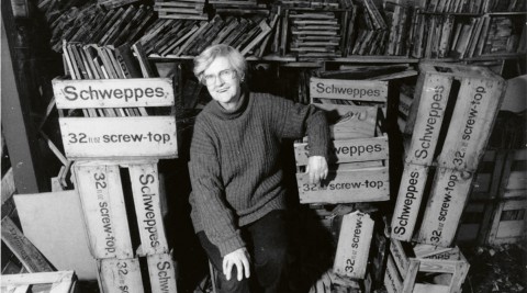 Gascoigne initially discovered an enormous cache of soft drink crates at a depot in Queanbeyan, carrying them home on the roof racks of her car.4 At this early stage, they were available in an array of colours, and discards could be purchased by the truckload. Later, when the artist told Schweppes of her use for their crates, the factory manager gave her unlimited access to their discards yard.5 Sadly, this was not to last, as the company eventually moved to using plastic crates, which were of no interest to her.