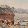 FARMYARD WITH HAYSTACK AND CATTLE