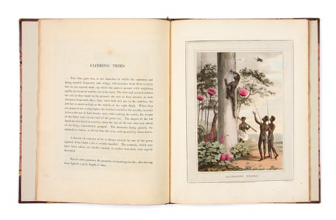 Tableaux des chasses le plus intéressantes: représentées en gravures colonées, pouvant server d’études de lavis et d’aquarelle, chez A. Nepveu, Librarie, Paris, 1819 (illus. ‘Hunting the Kangaroo’, ‘Throwing the Spear’ and ‘Climbing Trees’)