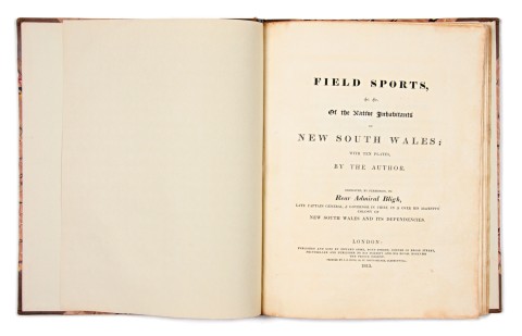 Field Sports of the Native Inhabitants was effusively dedicated to the most recently departed governor of New South Wales, William Bligh, who had been arrested and removed from office in the so-called Rum Rebellion: