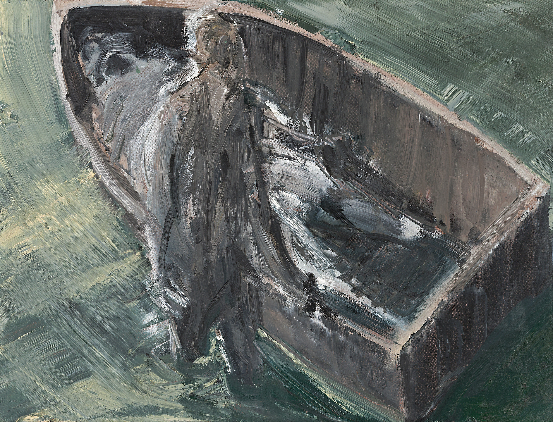 signed, dated and inscribed verso: 06561 / FIGURES & BOAT / EUAN MACLEOD / 06
