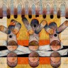 synthetic polymer paint and enamel on hessian on board