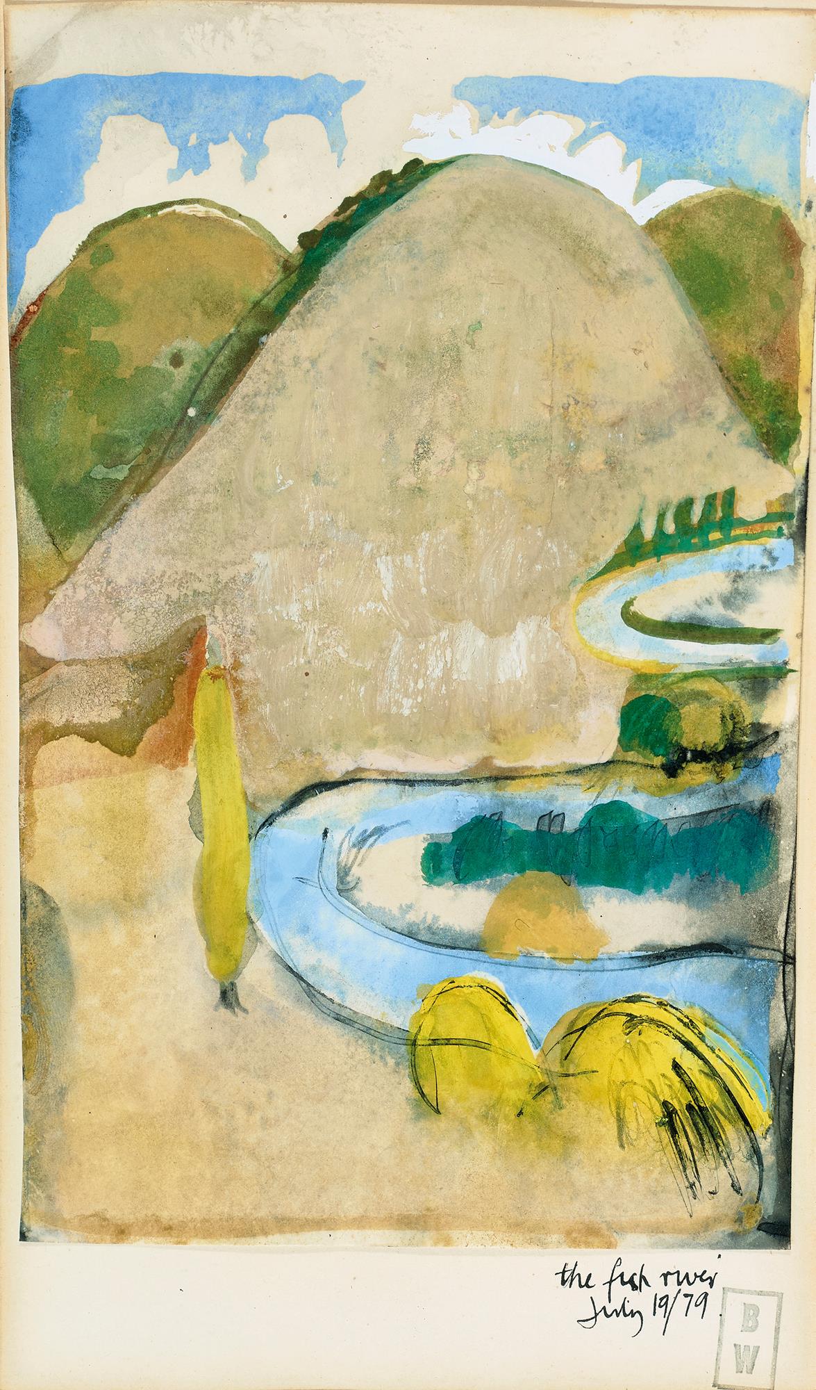 inscribed with title and dated lower right: the fish river/July 19/79